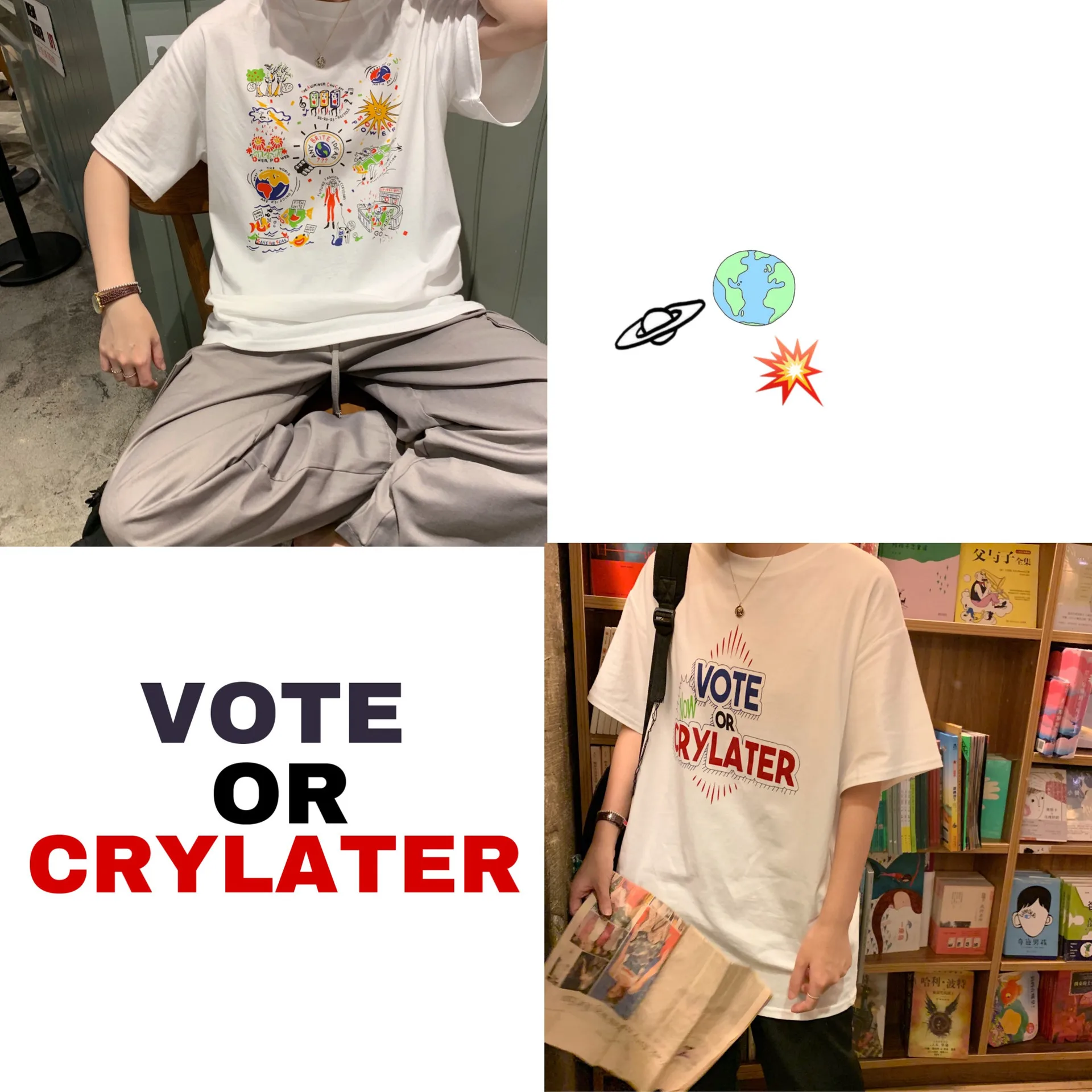 REVIEW TOP SELLER Photo Shoot Summer New Style Hong Kong Style Printed Mid-length BF Style Loose Short Sleeve T-shirt