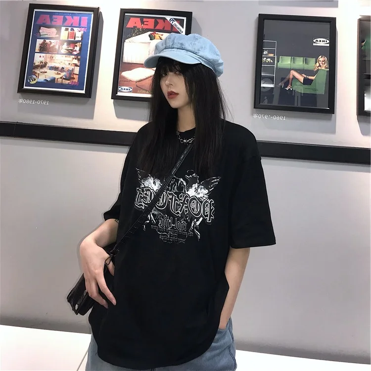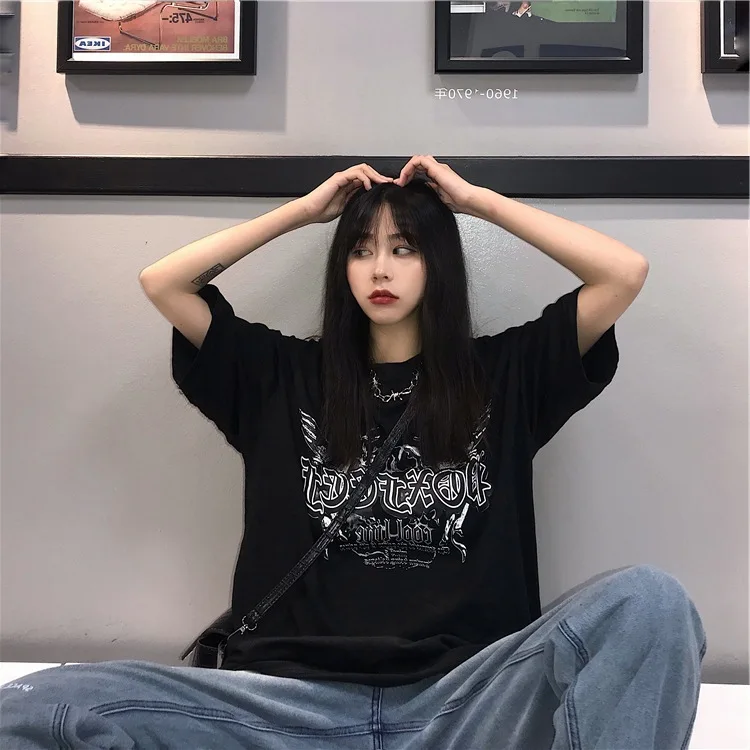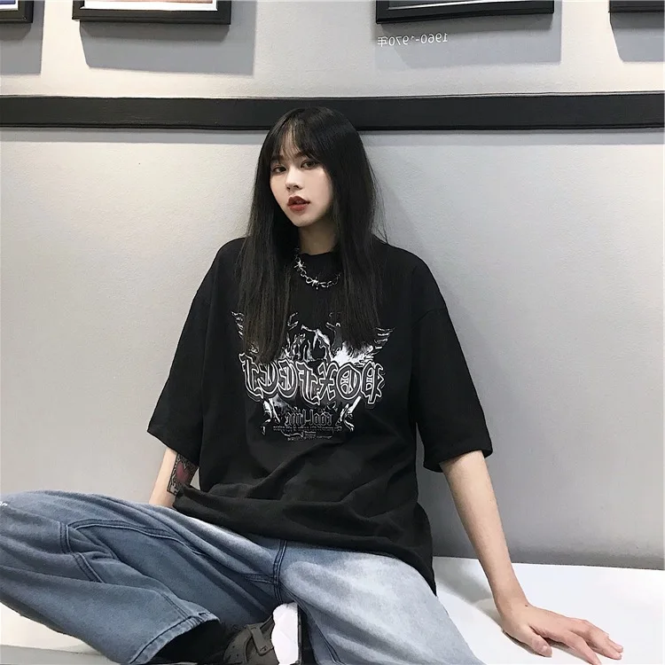 Photo Shoot 2019 Spring And Summer New Style Harajuku BF Style Loose-Fit Dark of INS Hip Hop Black