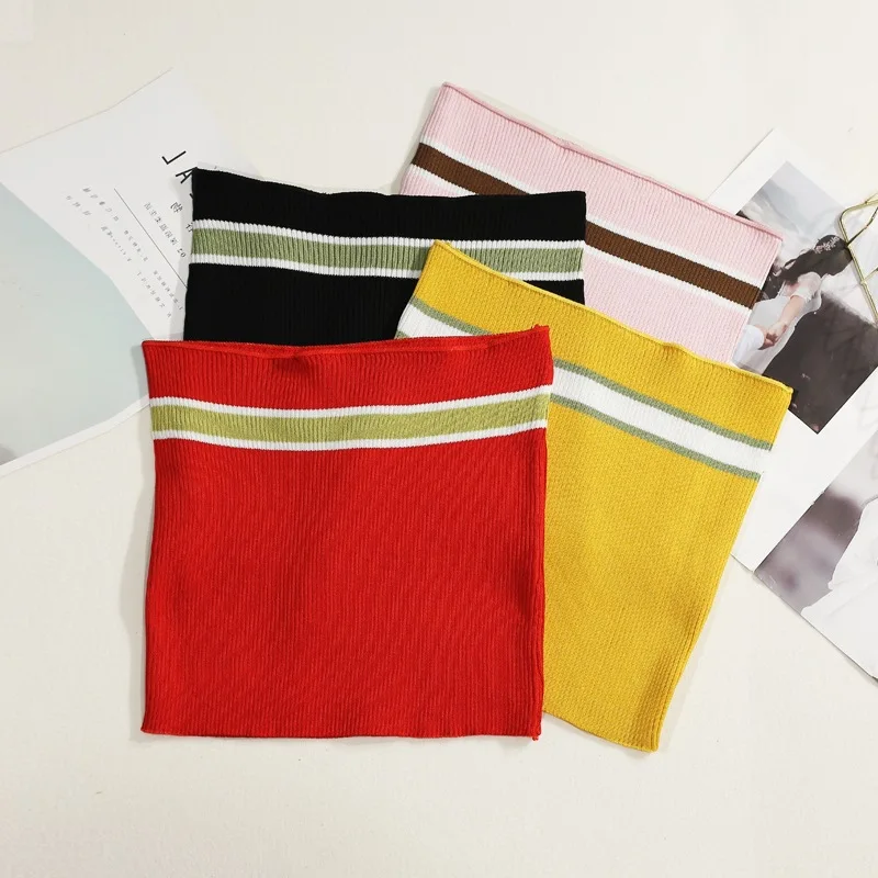 Photo Shoot ~ Summer New Style-Contrast Color Knitted Tube Top Short Outer Wear Base Anti-Exposure