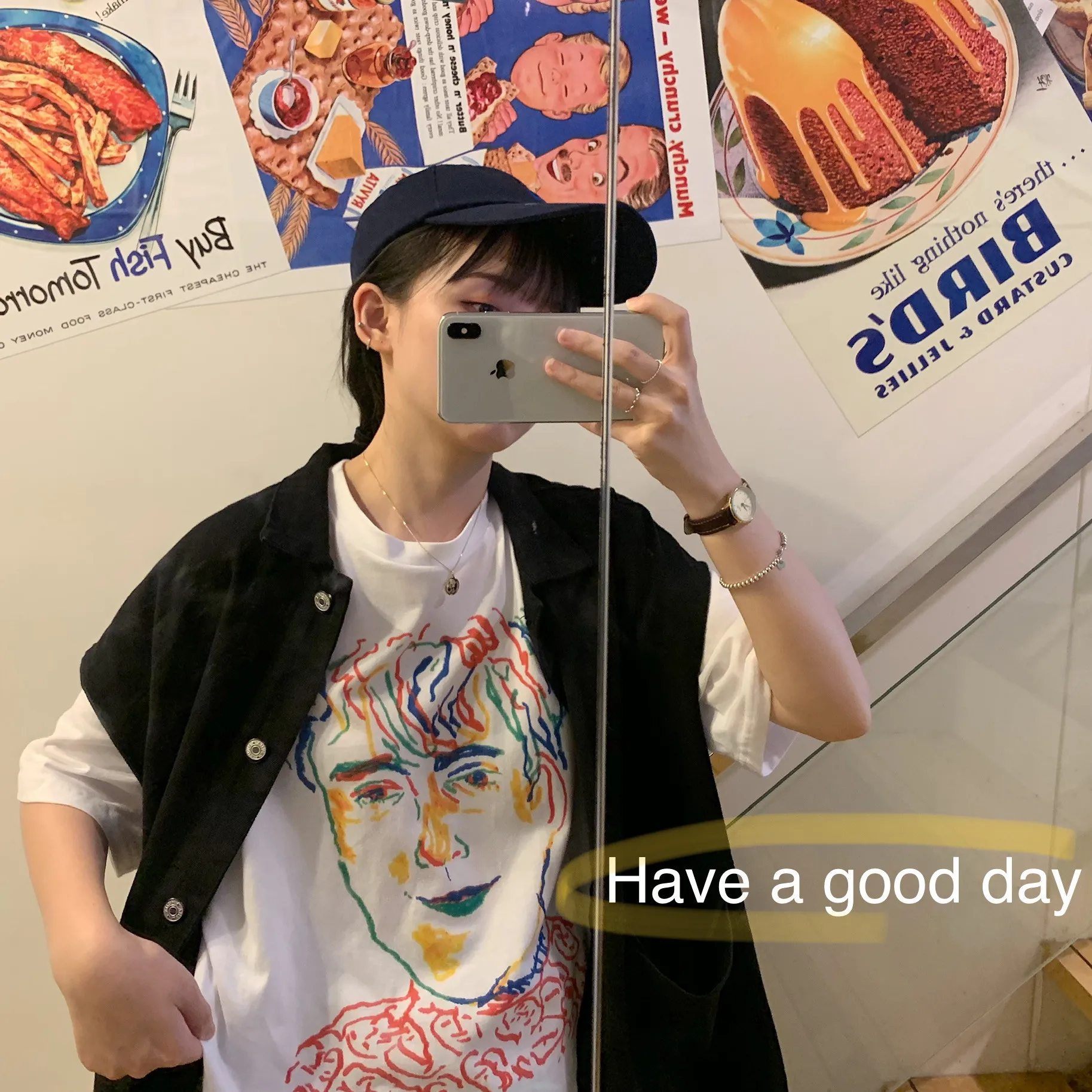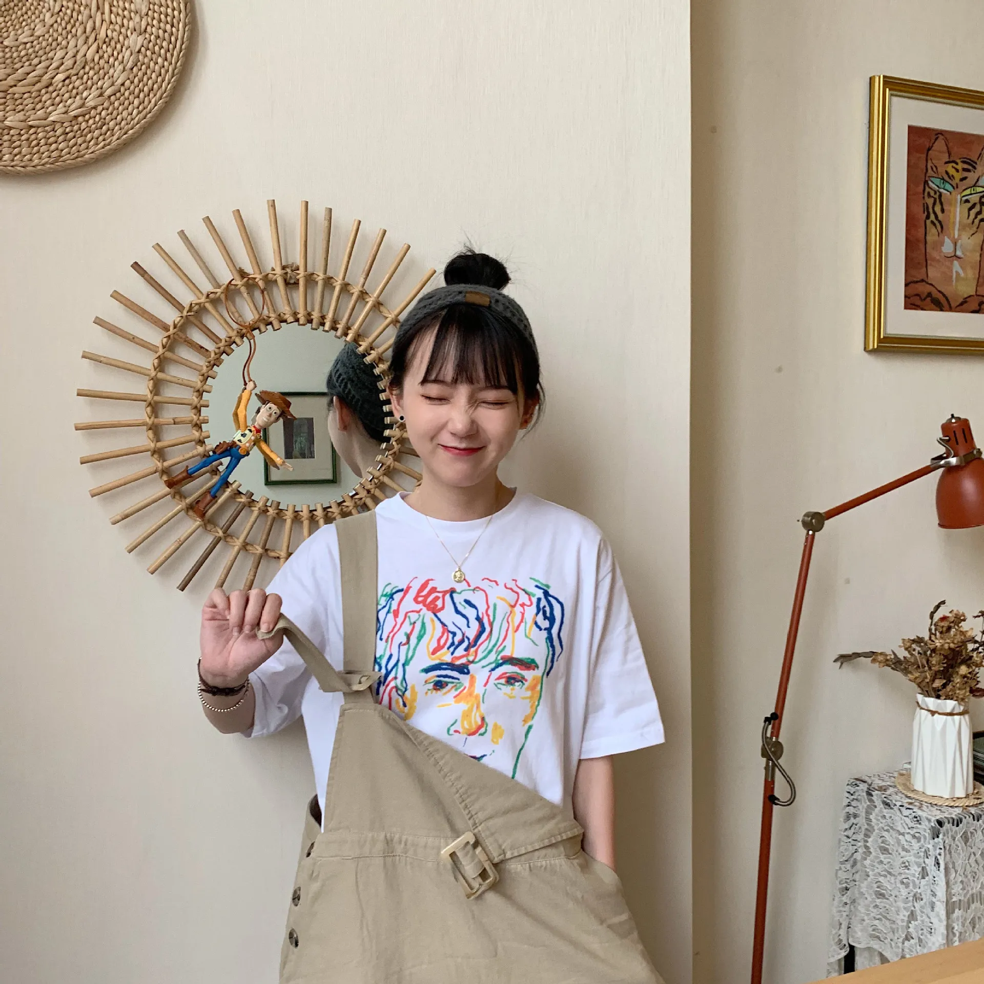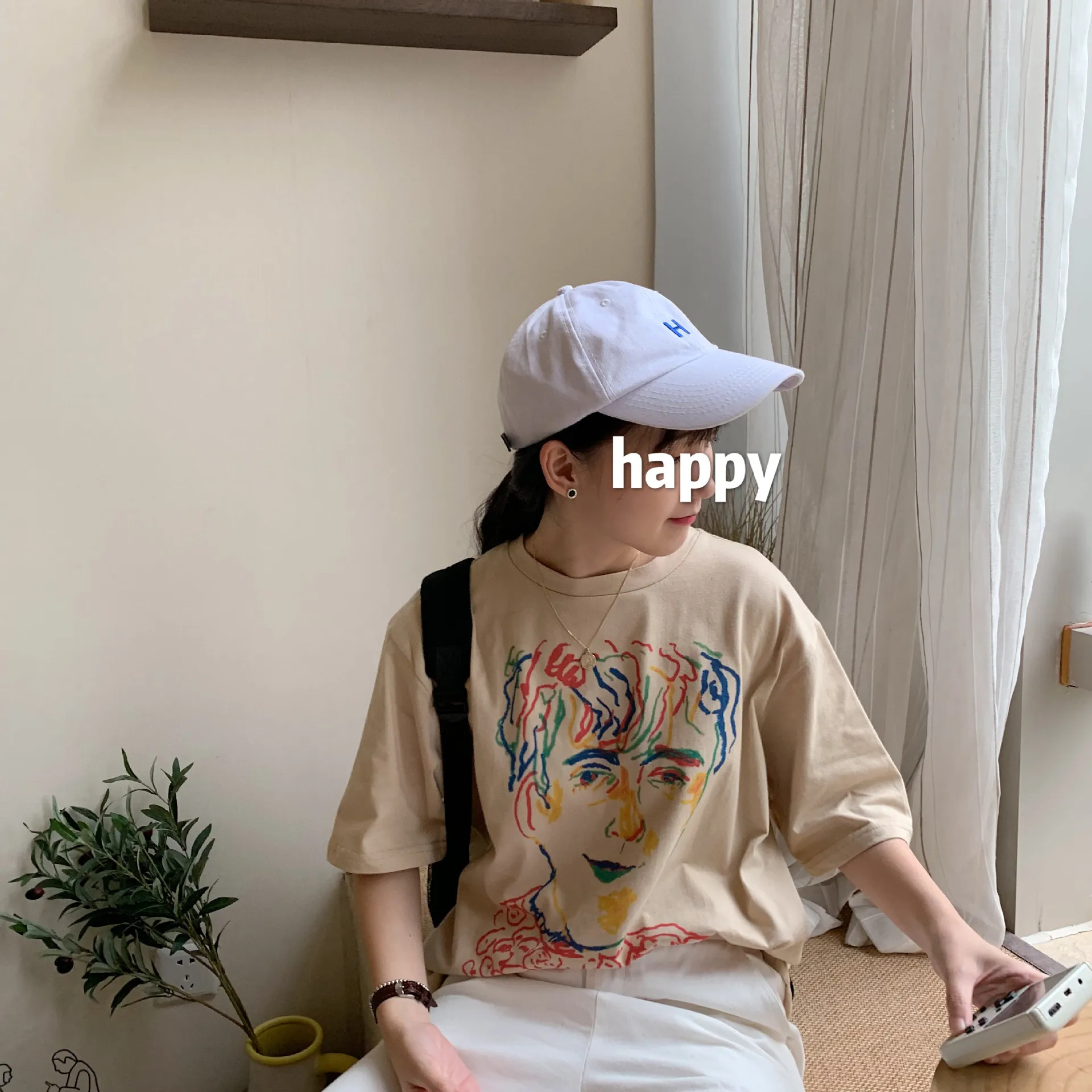BEST Photo Shoot Summer New Style Korean-style Abstract Printed Loose-Fit Online Celebrity T-shirt Women