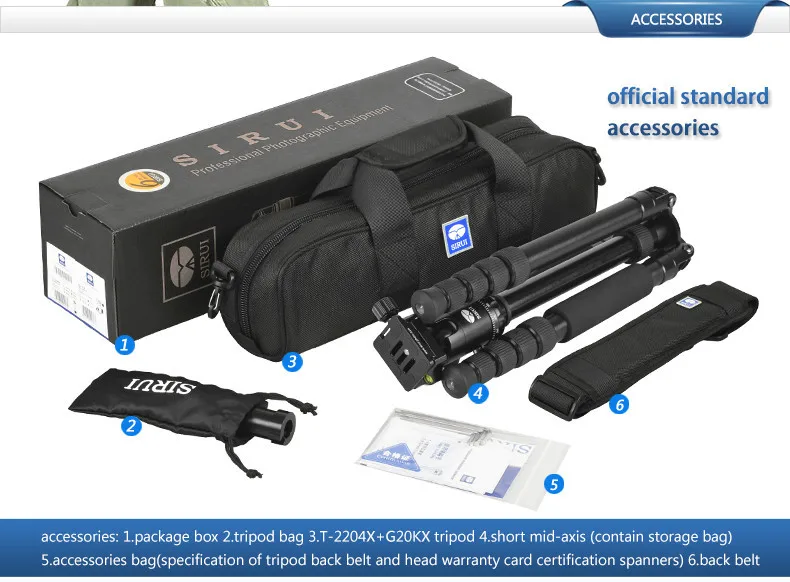 TOP T2204X+G20KX Sirui Protable Lightweight Aluminum Professional Camera Tripod with Ball Head 2 in 1 K