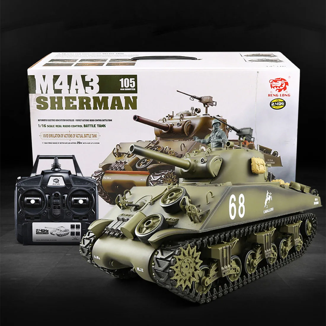 ORIGINAL 1:16 American M4A3 Sherman Tank 2.4G Remote Control Model Military Tank With Sound Smoke Shooting E