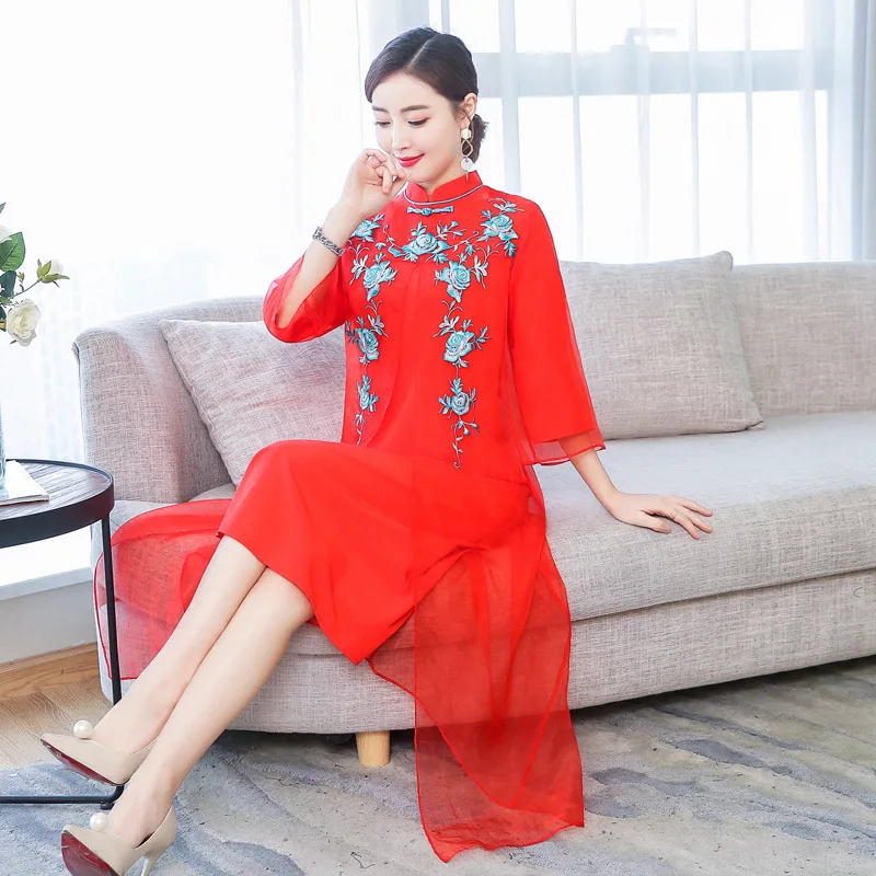 TOP Photo Shoot 2019 Spring And Summer Chinese-style Retro National Wind Improved Cheongsam Mock Two-Pi